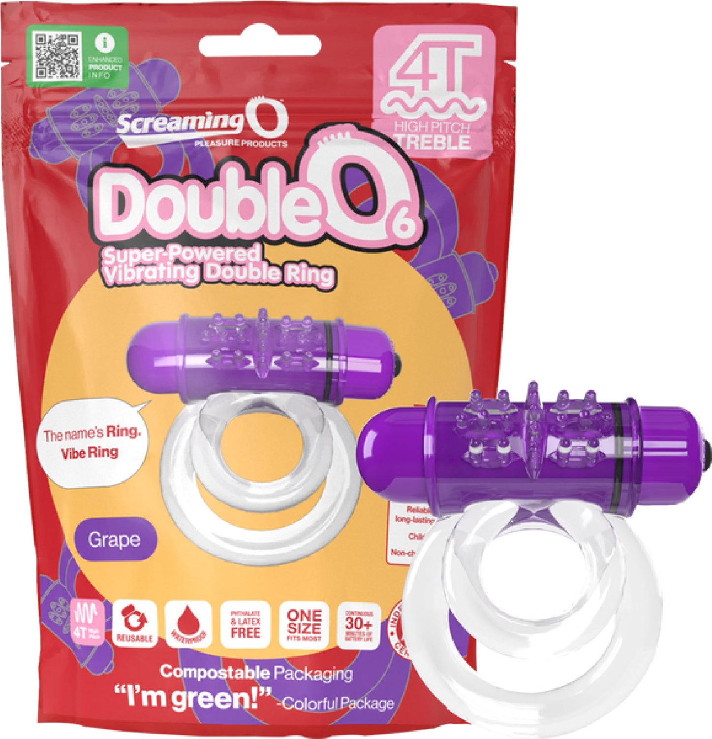 The DoubleO 6 vibrating ring features two specially positioned rings for an extra-secure fit – simply stretch one around the shaft and the other around the testicles. Featuring a powerful 4T motor creating treble style tickle and tease vibrations, new 4LR44 longer lasting batteries, and raised pleasure ticklers, the Screaming O 4T DoubleO 6 gives couples mutual super-powered pleasure right where it counts!In addition to promoting sexual health and wellbeing, Screaming O wants to put your mind at ease knowing that the Screaming O 4T DoubleO 6 was manufactured using materials and processes that are both ethical and sustainable. With compostable, eco-friendly packaging and more reliable, longer lasting batteries, we believe in doing our part to leave this planet better off than we found it.