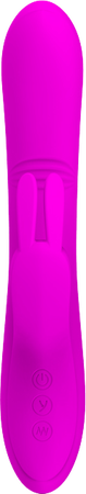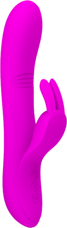 The Pretty Love Rechargeable Dylan is a premium sex toy designed to provide ultimate pleasure. With its sleek and stylish design, this rabbit vibrator is available in black and purple colors. The vibrator features a rounded and curved shaft, along with a smaller curved rabbit clit stimulator that can stimulate all your sweet spots.